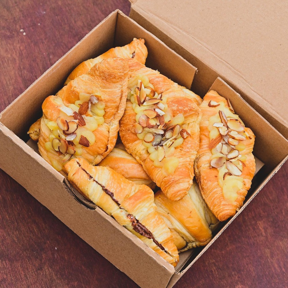Croissant de almendra: Nuestro croissant de almendra es el favorito de nuestros clientes. Esta delicia francesa tiene un relleno cremoso de almendras tostadas y un glaseado de azúcar en polvo que lo hace aún más irresistible. Es perfecto para un desayuno o un antojito dulce en cualquier momento del día.